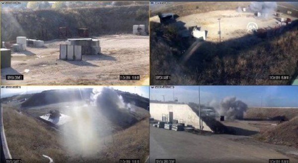 İlk olarak Afrin’deki Zeytin Dalı Harekatı’nda denenen ‘kamikaze drone’ Kargu’ düşman hedefleri üzerinde kendini patlatıyor